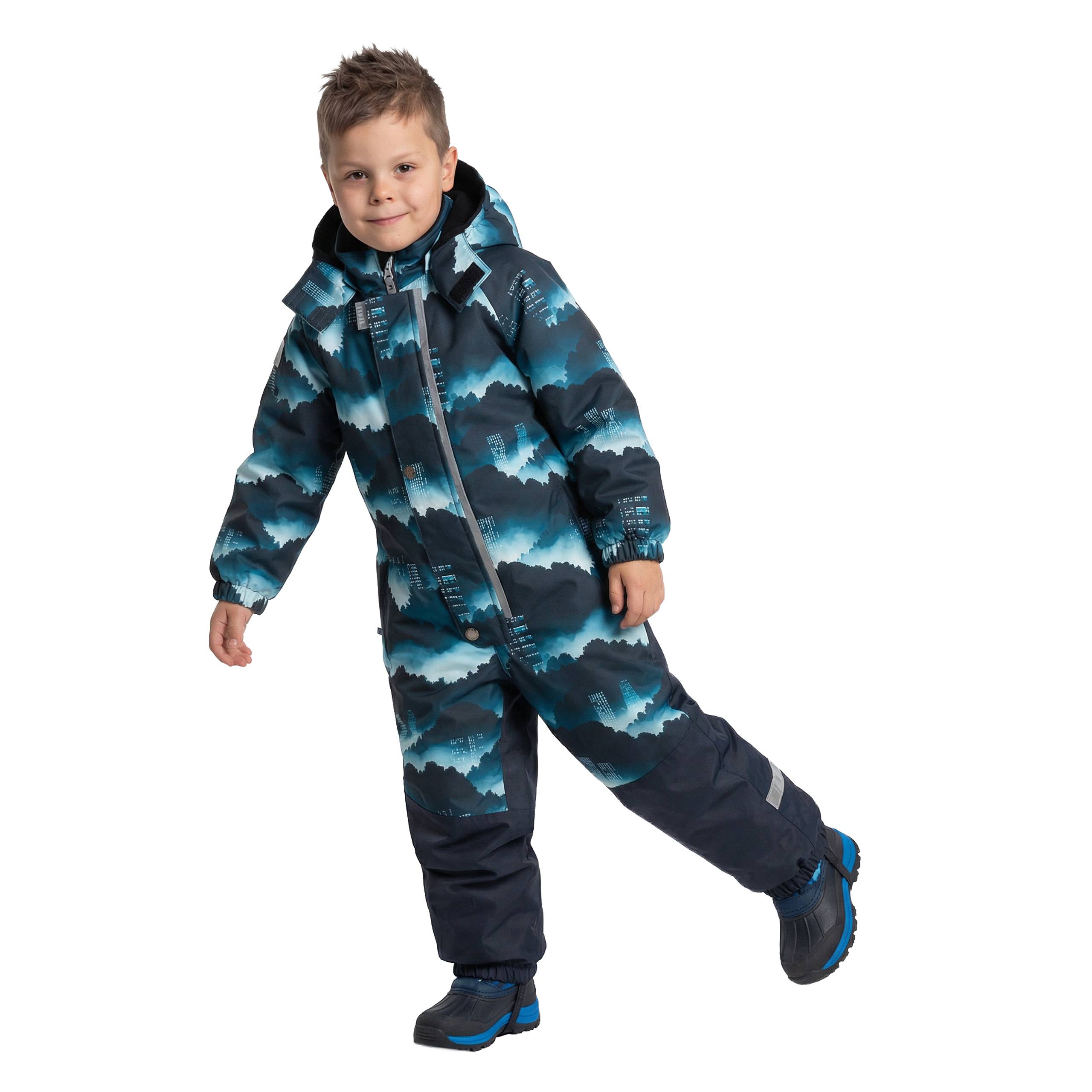 Mustriga ja heade ilmastikukindlate näitajatega ActivePlus (10000/10000) kangast kombe. Soojustus 80 grammi. Õmblused teibitud vettpidavaks. Vöökohal pingutusnöör, mis annab kombe sättida keha järgi. Soovituslik kandmistemperatuur on 0 kuni +10kraadi. Kindlasti jälgi tuulekülma ja arvesta lapse isikupäraga. Vajadusel kasuta soojasid aluskihte lisaks.