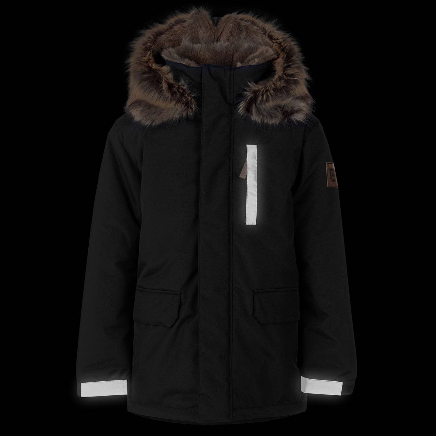 Suure ja karvase kapuutsiga koolipoiste parka. Kasutamiseks temperatuuridega 0 kuni -30kraadi. Kindlasti arvesta ka tuulekülmaga ja kasuta soojasid liskihte parke all. Ilmastikukindel kangas, mis on tuulekindel ja vetthülgav ja hingav. Helkurdetailid.