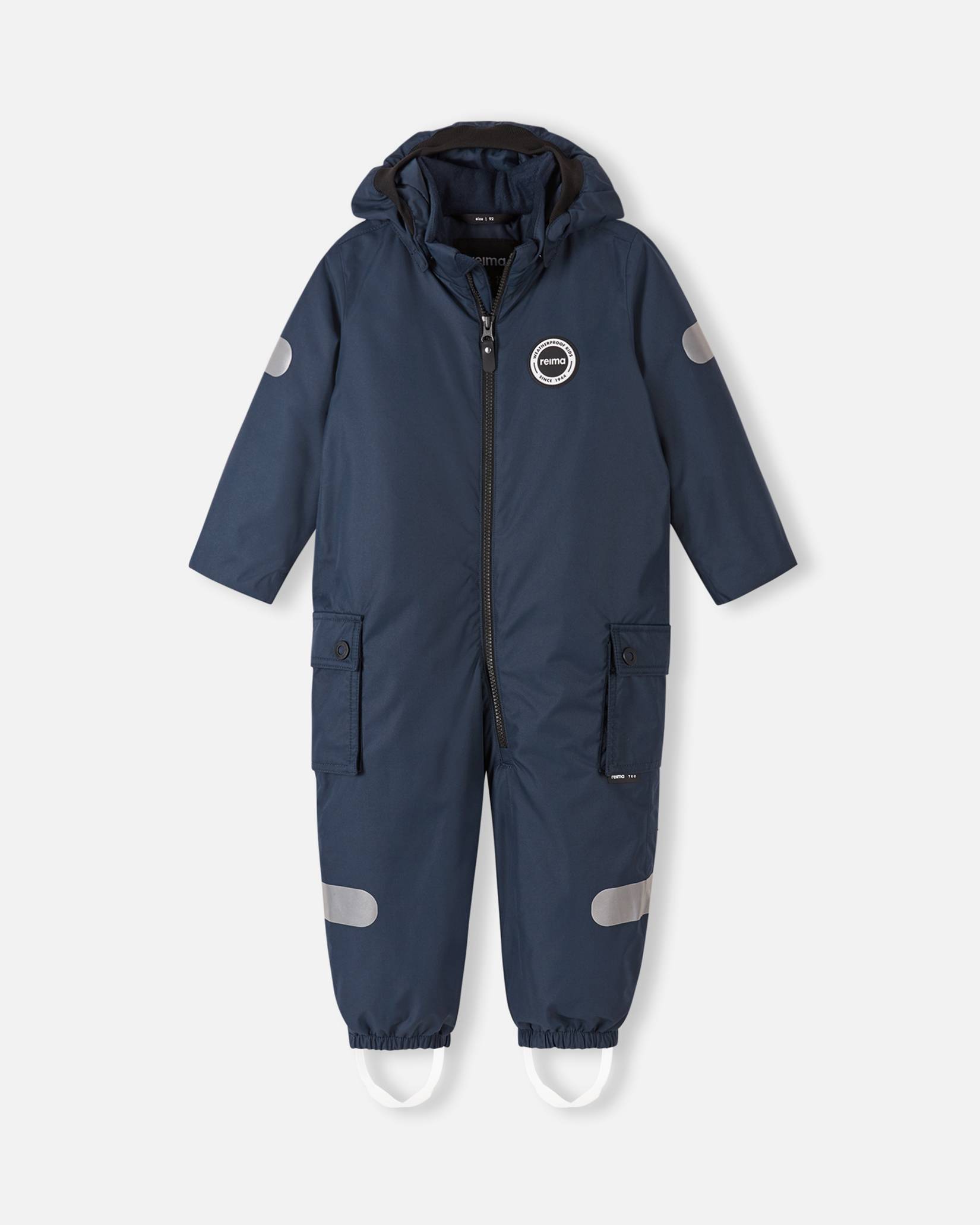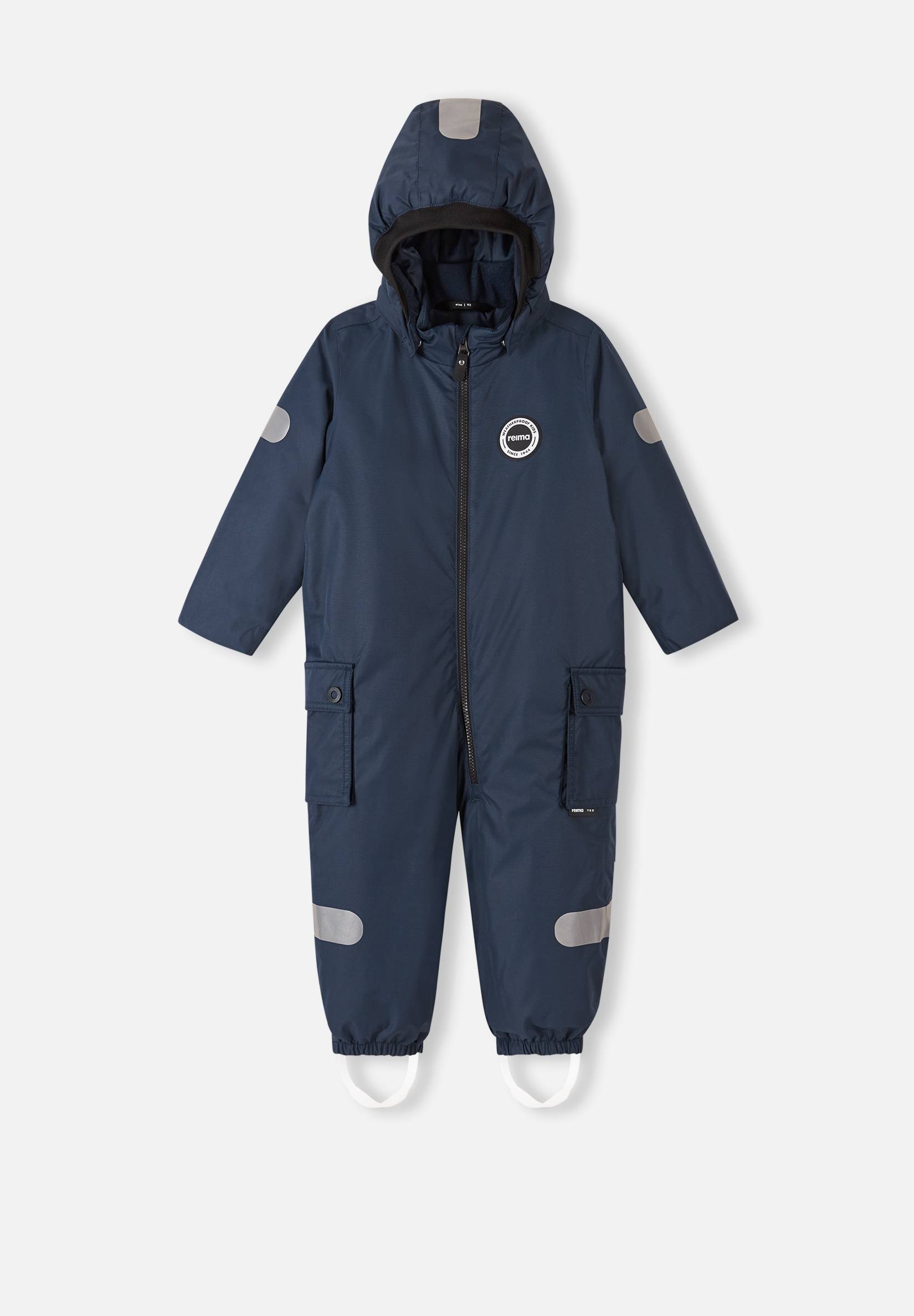 Reima kvaliteetne talvekombe. Vöökoht reguleeritav, kapuuts käib turvaliselt ära. Kõik õmblused on veekindlad, kombe materjal on vastupidav, sile polüestervooder, soojustatud istmikuosa. Pehme soonik kapuutsi servas ja mansettidel. Kaks klapiga taskut.